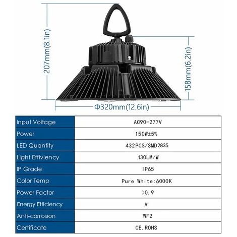 Anti-Éblouissement et PET-Réflection, 150W UFO Industriel LED donne une lumière puissante et bien uniforme