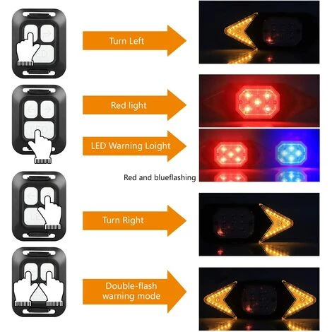 - 【Quelles fonctions le clignotant de vélo a-t-il️ : Il existe 4 modes de clignotants avancés pour vélo : clignotant gauche, clignotant droit, voyant LED clignotant rouge et bleu, voyant clignotant à double flèche. La lumière principale est rouge, les clignotants gauche et droit sont jaunes. Il y a quatre réglages, tout comme une voiture ou une moto, une flèche claire s’allumera, indiquant « gauche », « droite » et « danger ».