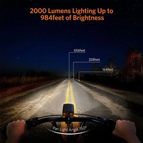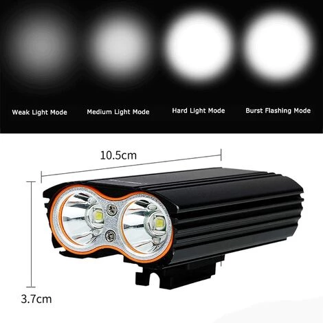 L’clairage avant a 4 modes: lev (2400 lumens-4 heures) – Moyen (1200 lumens sur 8 heures) – FAIBLE (600 lumens sur 16 heures) – Strobe (SOS) -2400 lumens .