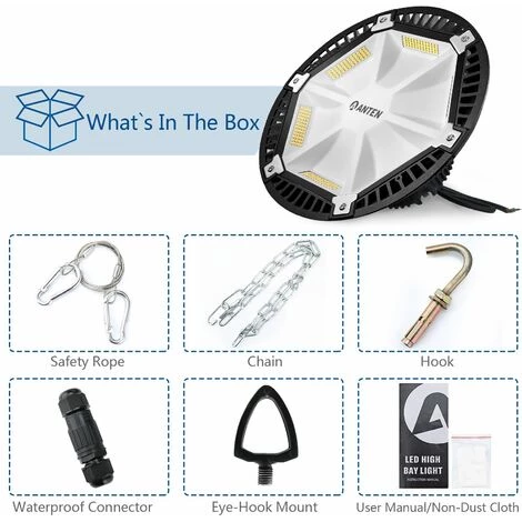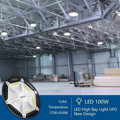 Anten 100W UFO LED Anti-Éblouissement Suspension Industrielle LED Étanche IP65 Projecteur LED 100W Éclairage Haute Baie Blanc Froid 6000K (Connecteur de câble étanche Fourni)