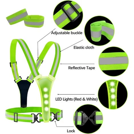 【Bretelles élastiques et taille ajustable】 Avec quatre boucles réglables et des sangles élastiques, le gilet de sécurité avec bracelets de sécurité réfléchissant peut facilement être enfilé sur votre T-shirt, vêtement de sport ou manteau à tout moment de l’année. Les sangles élastiques permettent au gilet de sécurité de s’adapter parfaitement à votre corps et de ne pas glisser pendant la course.