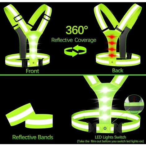 【Couvercle Réfléchissant à 360 ° et Haute Visibilité】 Fabriqué avec un matériau réfléchissant et des lumières LED pour que les adultes et les enfants soient visibles de manière optimale dans la circulation. Ce gilet de sécurité à LED est doté de lumières LED super lumineuses et de bandes réfléchissantes pour que vous puissiez être vu tout autour à une distance allant jusqu’à 200 m.