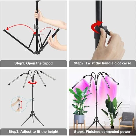 [Facile à installer] Cela ne prend que deux minutes! Ouvrez le trépied, ajustez la hauteur, tournez la vis dans le sens des aiguilles d’une montre jusqu’à ce qu’elle soit fixée, placez la lampe végétale sur le trépied et tournez la vis dans le sens antihoraire jusqu’à ce que la lumière végétale soit complètement fixée.