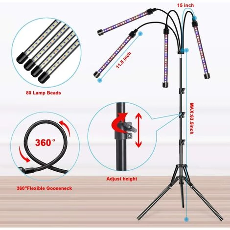 [Diverses utilisations] Le trépied réglable peut s’étendre de 27,94 cm à 160,02 cm, il suffit de le verrouiller à la longueur souhaitée pour répondre à vos besoins. Convient pour les balcons, les serres, les pièces sombres, les salons, les bureaux, les grandes et grandes plantes, les expositions de fleurs et les plantes en pot.