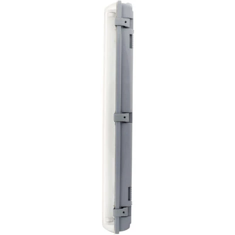 Réglette étanche IP65 idéale pour une utilisation en extérieur ou de type industriel. L’installation est rapide et facile grâce à un sytème de click-in et click-out et un kit de fixation inclus. L’entrée du câble par passe-fils se fait par le côté.