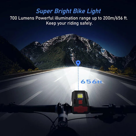 【Étanche et pratique】 La lumière de vélo adopte des matériaux avancés étanches à l’eau et à la poussière, qui conviennent à toutes sortes de conditions météorologiques, telles que la pluie, la neige et le brouillard. Conçu pour répondre aux exigences fonctionnelles lors de la conduite. Le phare de 700 lumens émet une lumière stable et brillante, ce qui améliore la visibilité et la sécurité dans des conditions terribles. Rendez votre voyage plus sûr.