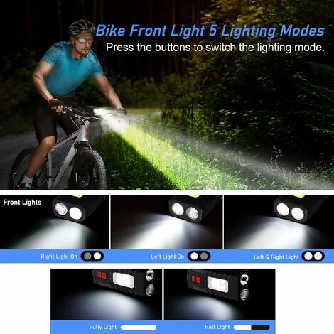 【Super lumineux avec 5 + 4 modes】LUMIÈRE AVANT – (phare avant : gauche on-right on-2 s’allume simultanément ; phare supérieur : entièrement lumineux/semi lumineux). FEU ARRIÈRE – (rouge puissant/rouge faible/rouge clignotant rapidement/rouge clignotant lent). Vous pouvez choisir différents modes en fonction de vos besoins et de vos préférences.