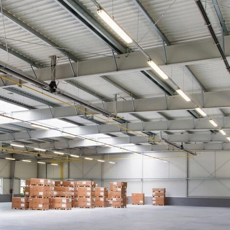 Description Plafonnier LED pour une utilisation dans les halls industriels, les ateliers et les entrepôts. luminaires pour pièces humides. Avec un énorme 4000 lumens, chaque zone, qu’il s’agisse d’un lieu de travail, d’un sous-sol ou d’un garage, est éclairée de manière optimale !