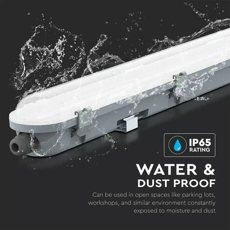 En raison du haut degré de protection IP65, cette lampe est idéale comme lumière de pièce humide et humide. Avec une puissance totale de 4320 lumens, chaque zone, qu’il s’agisse d’un lieu de travail, d’un sous-sol ou d’un garage, est éclairée de manière optimale ! Au total, jusqu’à 10 lampes peuvent être connectées les unes aux autres, de sorte que même de grandes surfaces telles que des entrepôts ou des ateliers peuvent être facilement éclairées. Par rapport aux lampes normales, les spots LED consomment une quantité minimale d’électricité et consomment encore moins que les lampes à économie d’énergie. Cela protège l’environnement et votre porte-monnaie.