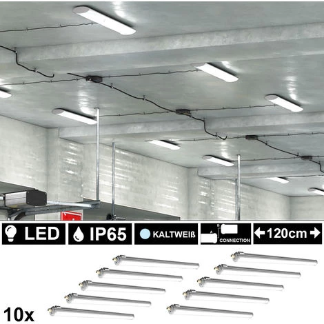 Ce luminaire convient en raison de sa degré de protection élevé IP65 idéal comme luminaire d’ambiance humide et humide. Chaque zone est éclairée de manière optimale avec un total de 2880 lumens, qu’il s’agisse d’un lieu de travail, d’un sous-sol ou d’un garage ! livraison. </ div>Un maximum de 8 lampes peuvent être commutées en série. La livraison comprend 10 lampes ! Détails de la lampe • type de lampe : plafonnier