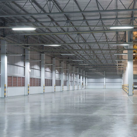 Description Plafonnier LED pour une utilisation dans des b&;timents industriels ou d’entrepôt, des ateliers ou des garages.