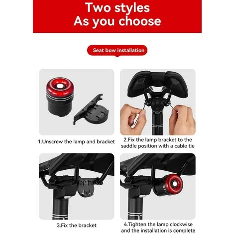 Feu arrière à induction intelligente: en mode flash lent et en mode lumière de respiration, activez le commutateur de feu arrière. Si vous conduisez dans un environnement sombre, les feux arrière s’allument automatiquement.