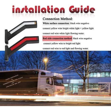 【Champ d’application】Applicable à tous les dégagements arrière de la plupart des voitures particulières/camions/remorques/fourgonnettes/remorques. Peut être utilisé comme feu de position latéral à LED, feu de signalisation, feu arrière, voyant d’avertissement,feu de signalisation, feu stop, etc.
