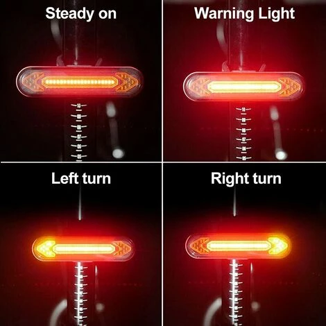 【Rechargeable par USB】 Le clignotant du vélo utilise une batterie au lithium de 500 mAh, ce qui permet au feu arrière du vélo d’être complètement chargé en 2 heures et peut fonctionner pendant environ 7 heures à luminosité constante. La télécommande adopte une pile bouton, qui peut fonctionner longtemps.