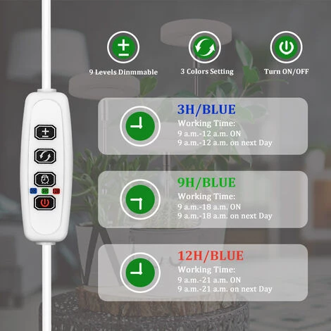 - 【Fonction de Minutage ON / OFF du Automatique】Lampes avec une fonction de synchronisation automatique, si vous faites la minuterie de 3H, 9H ou 12H, la lampe arrêtera de fonctionner automatiquement après 3H, 9H ou 12H.