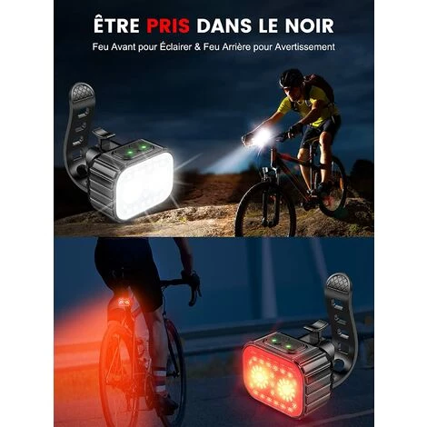 Design Unique et Modes D’éclairage Multiples: Chaque lumière vélo est conçu avec 2 LED principales et 19 LED auxiliaires périphériques, contrôlées par des interrupteurs indépendants. Le feu avant dispose de 2 X 4 modes et le feu arrière de 2 X 6 modes, qui peuvent être utilisés individuellement ou en combinaison selon vos besoins.