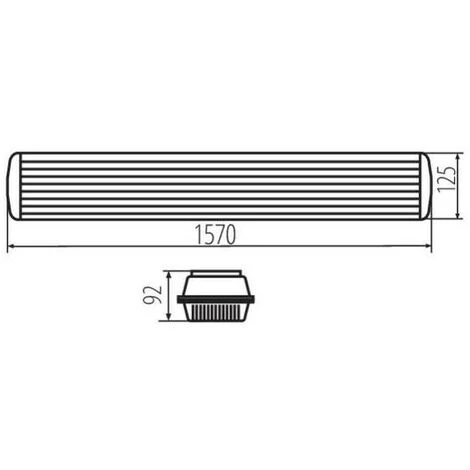 Dimensions : Rectangulaire largeur 125mm longueur 1570mm hauteur 92mm finition Gris.