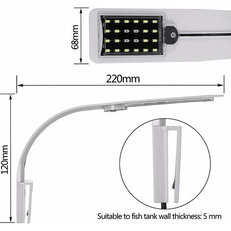 Qualité supérieure Cette lampe d’aquarium est fabriquée en plastique de haute qualité, qui a une performance longue durée et est bénéfique pour cultiver des plantes. LED longue durée avec aucune ampoule de rechange nécessaire.