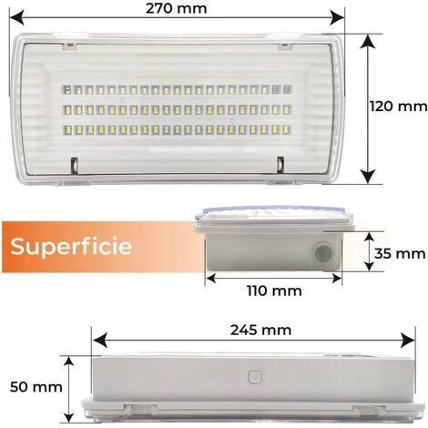 Lumière d’urgence led atomant de 8W avec 450 lumens,un angle de faisceau lumineux de 180º offrant un éclairage large et clair de la zone. Température de couleur 6500K.