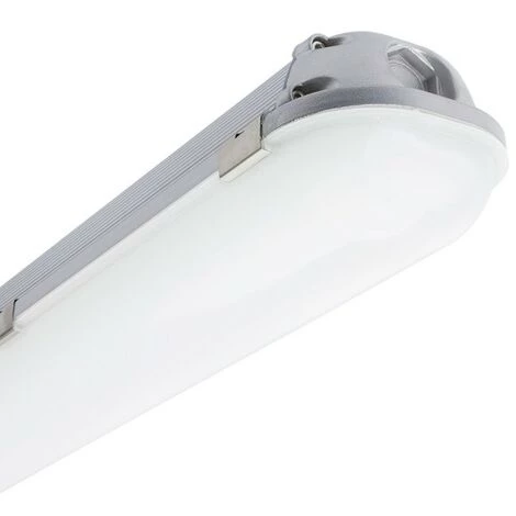 La grande efficacité de sa source lumineuse atteint 90lm/W, ce qui la rend idéale pour remplacer les réglettes fluorescentes étanches jusqu’à 80W. Offre un éclairage très homogène grâce à son angle d’ouverture du faisceau lumineux de 120°. La finition opale du luminaire réduit l’éblouissement.