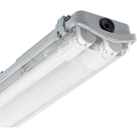 La RĂ©glette Étanche Slim IP65 pour deux Tubes LED 150cm Connexion LatĂ©rale, vous permet d’installer deux tubes T8 et de les protĂ©ger de la poussière et de l’humiditĂ©.