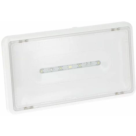 Luminaire sur source centralisée d’évacuation saillie à LEDs 45lm IP43 IK07 plastique tension 48V= à 220V= ou 230V~