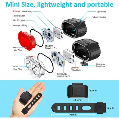 Sécurité et visibilité: les groupes de feux de vélo avant et arrière sont super lumineux pour une sécurité et une visibilité maximales. Les sangles de montage élastiques en silicone garantissent une stabilité maximale. Restez en sécurité même sur des routes accidentées.