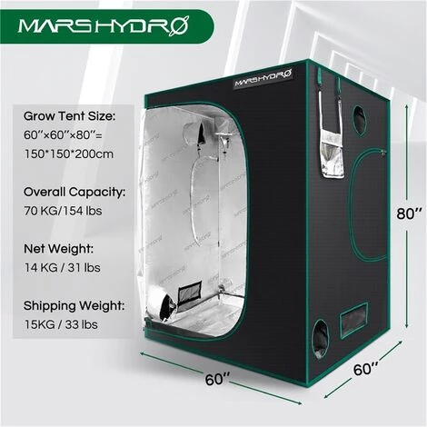Taille de la tente: 59 « x59 » x78 « = 5’x5’x6.5 ‘= 150x150x200cm