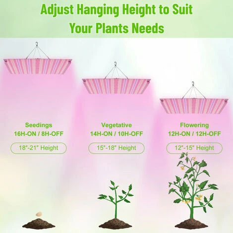 - [Meilleure qualité et longue durée de vie] La dernière conception des lampes de croissance à LED chaudes, utilisant des puces LED de la plus haute qualité. Ce panneau de lampes de culture de plantes est économe en énergie, a une haute efficacité lumineuse, une dissipation rapide de la chaleur, une faible consommation d’énergie, une longue durée de vie, une lumière douce. Nos lampes de culture à LED fournissent la longueur d’onde de lumière la plus efficace pour vos plantes afin d’améliorer la photosynthèse et la croissance saine des plantes.
