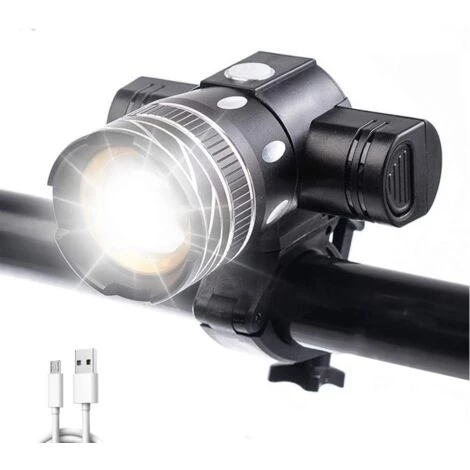 ÉCLAIRAGE AVANT DE VÉLO À 3 MODES】 Le phare de vélo dispose de 3 modes d’éclairage : haut-moyen-bas, vous pouvez également régler la mise au point, faire pivoter les lumières du vélo à la main et modifier la taille de l’ouverture. Vous pouvez l’ajuster en fonction de la situation réelle. La lampe de vélo a une fonction étanche IPX5. Par temps de brouillard et de pluie, l’éclairage vélo vous éclairera.