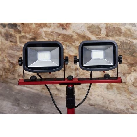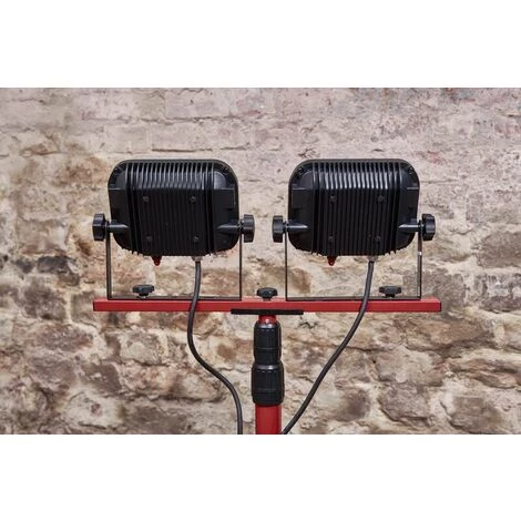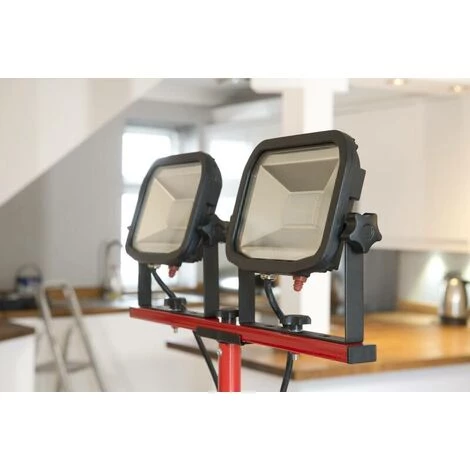Projecteurs de travaux, parfaits en intérieur comme en extérieur !Projecteurs à LED avec un cadre en acier robuste, réglables en hauteur. Idéal pour l’éclairage pendant la rénovation, tant à l’intérieur qu’à l’extérieur. Avec ces projecteurs à LED, vous économisez jusqu’à 90% d’énergie par rapport aux halogènes et vous obtenez également plus de lumière ! De plus, les lampes LED durent beaucoup plus longtemps. Enfin, une gestion intégrée des câbles et un câble en caoutchouc de 3 mètres de long.Caractéristiques:Économisez jusqu’à 90% d’énergie par rapport aux halogènesPour usage intérieur et extérieur2 x 22 wattsGestion de câble intégréePlus d’éclairage, avec moins de consommation d’énergie!Rondelles de trépied avec cadre en acier robuste.La hauteur est réglable individuellementInterrupteur étanche (IP65) sur chaque projecteur, pour une utilisation et une orientation indépendantes.Un véritable radiateur puissant comparé à l’halogène!Boîtier en aluminium moulé ultra mince.Caractéristiques techniques :2 x 22 wattsRemplacement pour 2 x 300 watts!2 x 1800 lumensBlanc lumière du jour5000 KelvinCâble en caoutchouc de 3m de longLampes LED à vie d’environ 30 000 heuresCRI> 80220-240 V50 heurestailleTotal (H x Ø): 850 – 1700 mm x 960 mmSpot (HxB): 140 x 210 mmPoids: environ 5,2 kg