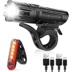 QERSTA Ensemble De Lampes De Vélo Super Lumineuses, Phares Rechargeables USB Puissants Et Feux Arrière.