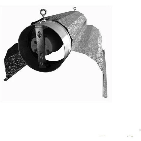 Ce réflecteur avec une forme de tube, dispose de flanges latérales de diamètre 150mm qui permettent la connexion à un système de ventilation au moyen de gaine alu ou pvc. Ces flanges permettent aussi de bien protéger l’ampoule contre les projections d’eau lors des arrosages.