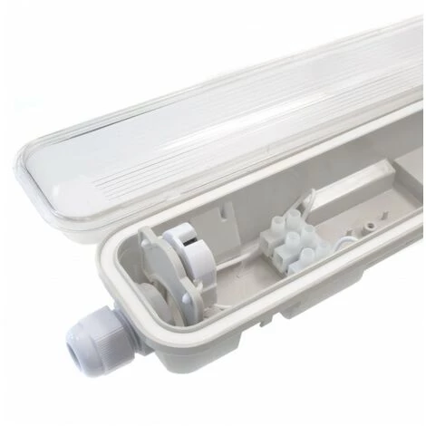 Tube LED T8 non fourni. Cette réglette LED simple, de 1585 mm de longueur, est compatible uniquement avec les tubes LED DeliTech® ou Ecolife Lighting® . Fabriquer en polycarbonate, cette réglette LED possède un indice de protection IP65 qui lui permet d’avoir une parfaite étanchéité à la poussière, l’eau et à la corrosion. Elle convient donc parfaitement aux milieux humides et notamment industriels. Vous pouvez l’installer dans un atelier, parking, garage ou même dans une cuisine, ce boitier pour tubes LED T8 permet une diffusion douce et homogène de la lumière. Avec ce boitier LED simple étanche, vous pouvez y insérer des tubes LED T8 de 1585mm de longueur et ainsi remplacer vos tubes fluorescents par des tubes LED T8 plus économiques et écologiques. Rapide et simple à installer, les réglettes pour tube LED T8 se branchent directement sur votre installation en 220/240V.
