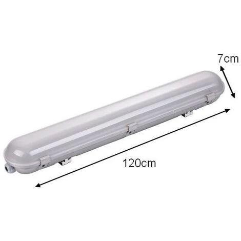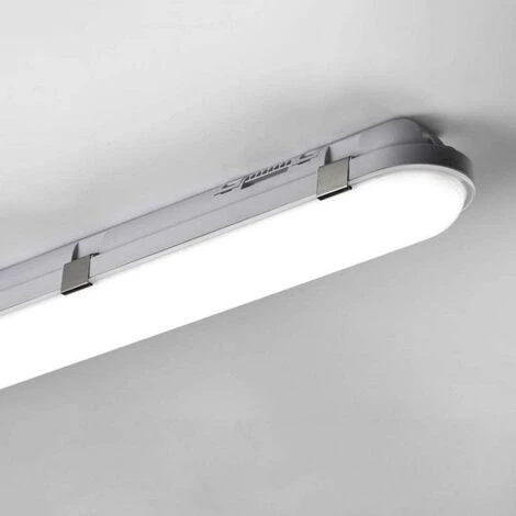 Forte de son Indice de Protection IP65, cette réglette résiste aux projections d’eau et aux poussières. Vous pourrez donc l’installer ou bon vous semble, que cela soit en extérieur ou en intérieur, dans un lieu humide ou sec. De plus, sa puissance de 40W lui confère une forte puissance d’éclairage et offre un flux lumineux d’environ 4000 lumens. Elle remplace aisément vos anciennes réglettes fluorescentes étanches pour un éclairage homogène et non-éblouissant grâce au diffuseur opale.