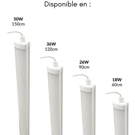 Grâce à son excellent rendement de 5000 lumens pour une puissance de 50 Watts, ce produit vous propose une solution équivalente à un luminaire halogène de 500W. Fort de ses 150 centimètres, cette réglette pourra vous éclairer sur une grande zone. Réduisez la consommation énergétique de vos luminaires grâce à la LED !