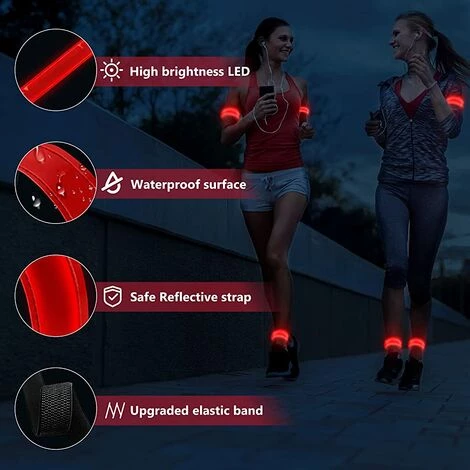 Haute Visibilit Jour et Nuit – combin le bracelet led avec la bande rflchissante impermable. ce brasasrd led rechargeable est idal pour se signaler sur la route dans le jour. plus visible au crpuscule. dans la nuit ou par temps de pluie