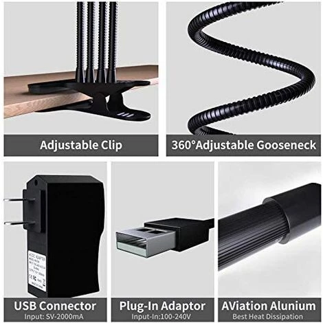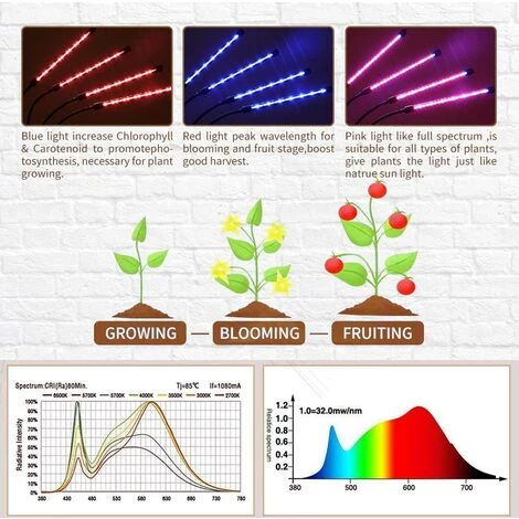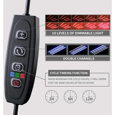 TINOR 40W Lampe 80LED Horticole Croissance Floraison Grow Light Avec 360° Adjustable Agrafe 3/6/12H Cycle Minuterie 3 Modes 10 Luminosité