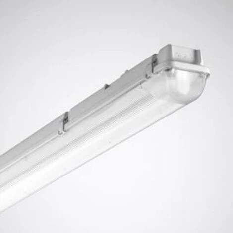 Plafonnier et applique murale pour des applications standard dans des locaux humides. Pour 1 lampe fluorescente T26 58 Watt. Avec vasque en PC, claire, résistante aux chocs. Lisse à l’extérieur, avec prismes longitudinaux situés à l’intérie Etanche T8 à vasque en polycarbonate anti-choc, corps en résine polyester, renforcé par fibre de verre. Livré avec clips polycarbonate.